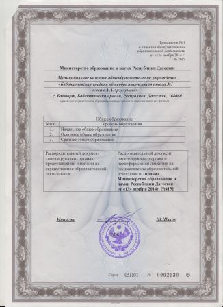 Сокращенное наименование образовательной организации* МКОУ "Бабаюртовская СОШ №1 им.А.А.Арзулумова"